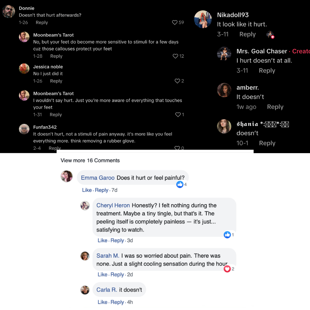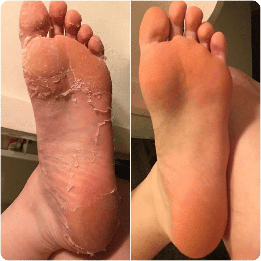 We'll be honest — it's a bit unusual watching your skin shed. But most customers describe it as "oddly satisfying" (like peeling sunburn). Just wear socks for a few days to manage the flakes, and you'll be fine.
